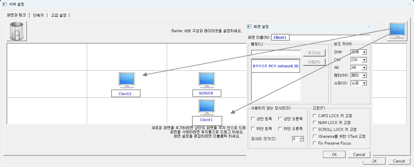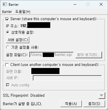- 서버 PC은 Barrier 실행 화면에서 서버 설정을 누름