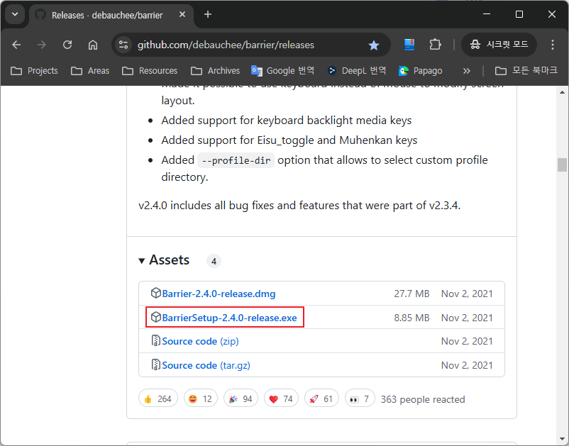 - 공식 사이트에서 barrier v.2.4.0 내려받기