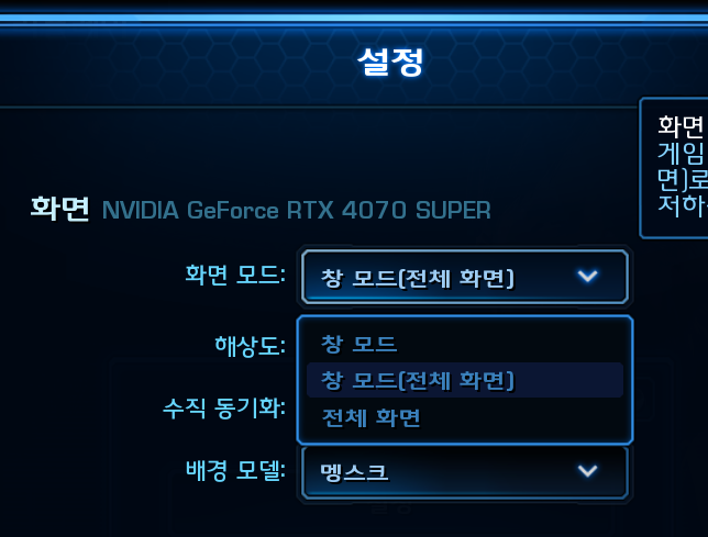 - 27인치 2560x1440 화면 배율을 쓰는데 창모드는 너무 작음