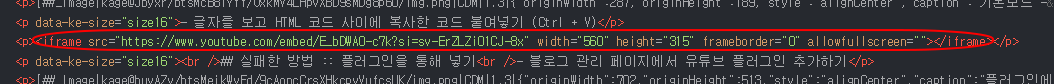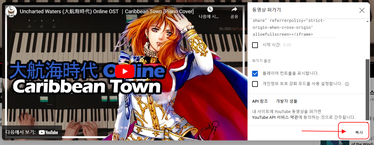 - [복사]를 눌러서 HTML 코드를 복사하기