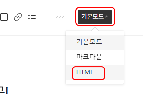 - 티스토리 글쓰기에서 [기본모드] 가 아닌 HTML 모드로 변경