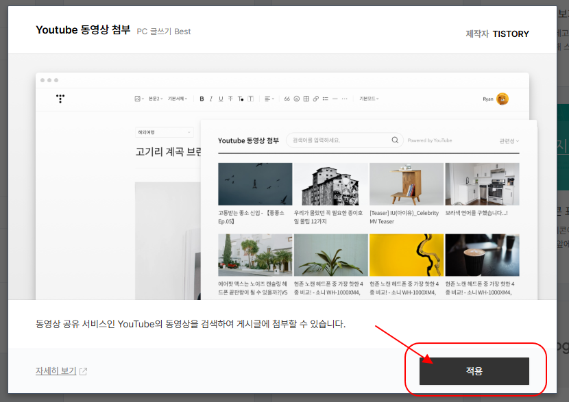 - 글쓰기 화면에서 유튜브 플러그인 실행하기