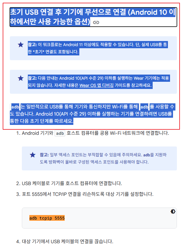 안드로이드 스튜디오 상에 보면 adb를 wifi로 붙일 수 있는 것처럼 되어 있어 몇차례 시도해 본 적이 있으나,