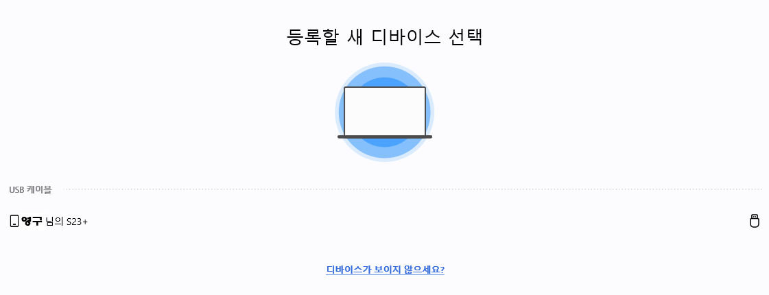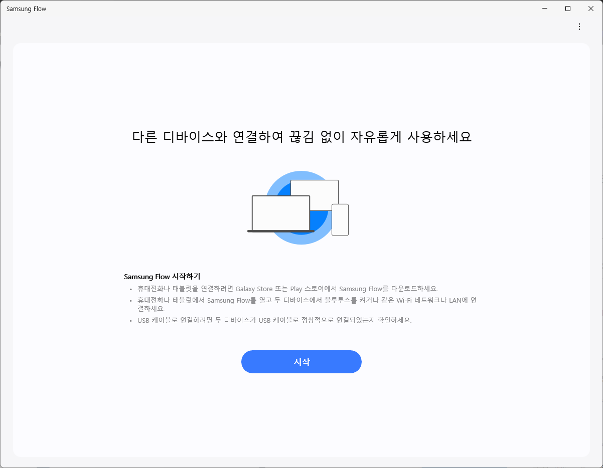 - 시작 버튼을 눌러 연결할 삼성 디바이스를 선택