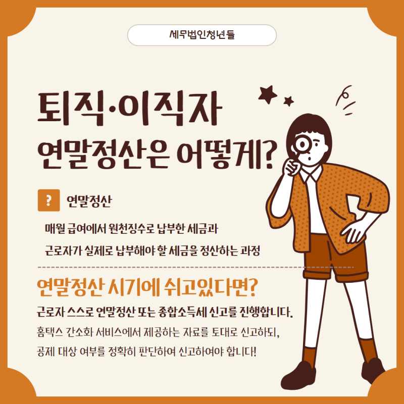 퇴사 후 아직 쉬고 계신가요? 그렇다면 연말 정산에 대해 알아보는 것이 필요합니다. 특히 중도 퇴직자라면 더욱 이 과정은 중요합니다. 이번 포스팅에서는 중도 퇴직자의 연말 정산에 대한 전반적인 내용을 다뤄보겠습니다. 근무 기간에 따라 어떤 공제 항목이 불가한지, 근무 기간과 상관없는 공제 항목은 무엇인지, 그리고 기타 상황별 연말 정산 방법에 대해 자세히 알아보겠습니다.