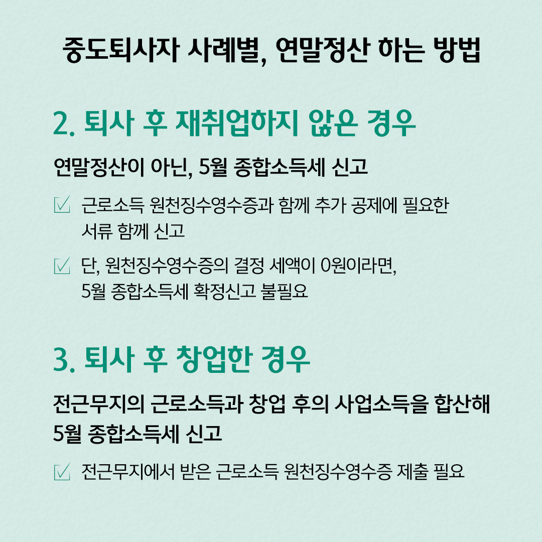 위 를 참고하시면 중도 퇴직자에 대한 연말 정산 방법의 다양한 카테고리를 확인할 수 있습니다.