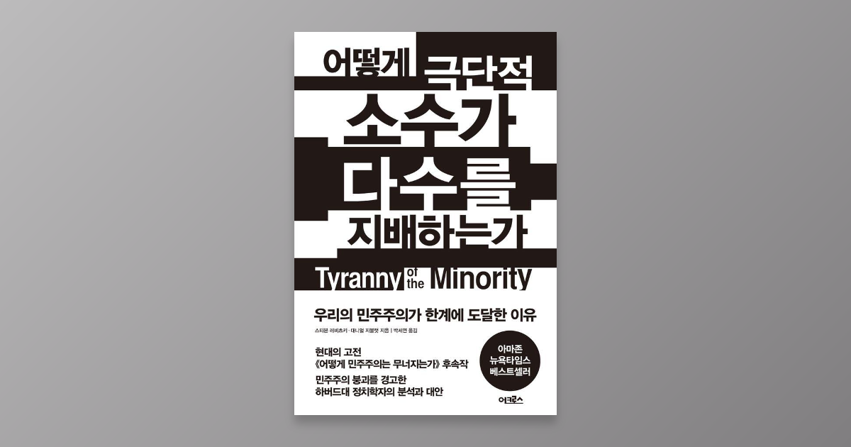 북리뷰 | 제목 : 어떻게 극단적 소수가 다수를 지배하는가 저자 : 스티븐 레비츠키, 대니얼지블랫 책소개 정치 분야 최장기 스테디셀러 《어떻게 민주주의는 무너지는가》 후속작. 하버드대 정