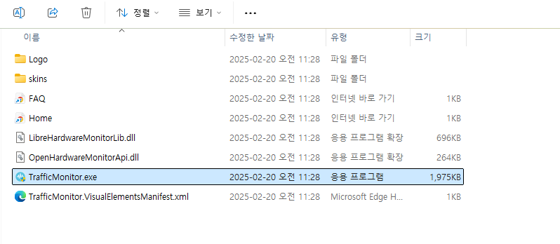 폴더 내부에 TrafficMonitor.exe 파일을 실행하여 줍니다.
