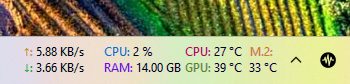 위처럼 윈도우 작업표시줄에 인터넷 속도와 CPU RAM 사용 정보 및 온도를 표시하는 방법을 알아봅니다.