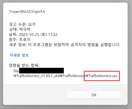 과감하게~ 바이러스 예외 처리를 해버렸습니다. ( ͡ಥ‿ ಥ)━☆゚.*・。゚