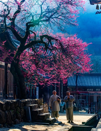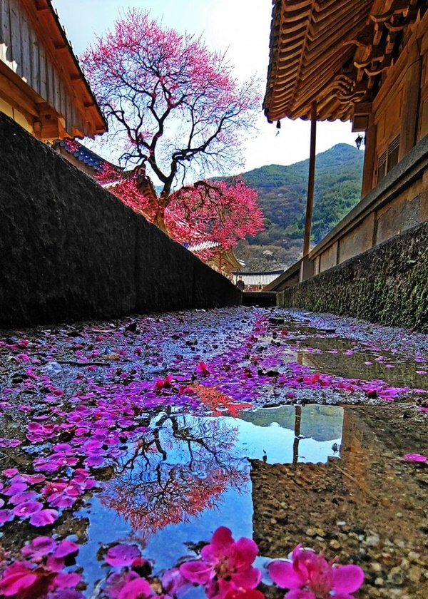 에서는 생기 가득한 핑크빛 꽃잎들이 길을 따라 만개해 있는 모습을 볼 수 있어요. 이렇게 아름다운 풍경을 감상하면 정말 봄이 왔구나 싶답니다. 주변의 전통 건축물과 어우러져서 한폭의 그림 같은 장면을 만들어내죠.