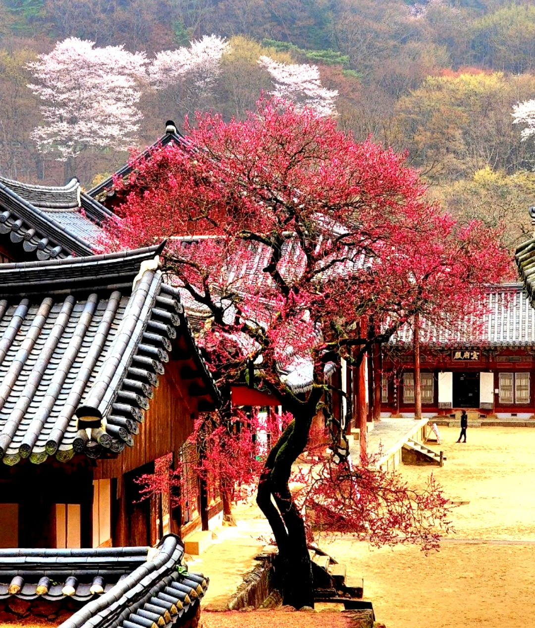 에서는 전통 건축물 배경으로 가득 핀 홍매화를 볼 수 있어요. 이처럼 홍매화는 봄의 초입에서부터 우리에게 환상을 안겨주는 꽃이랍니다.