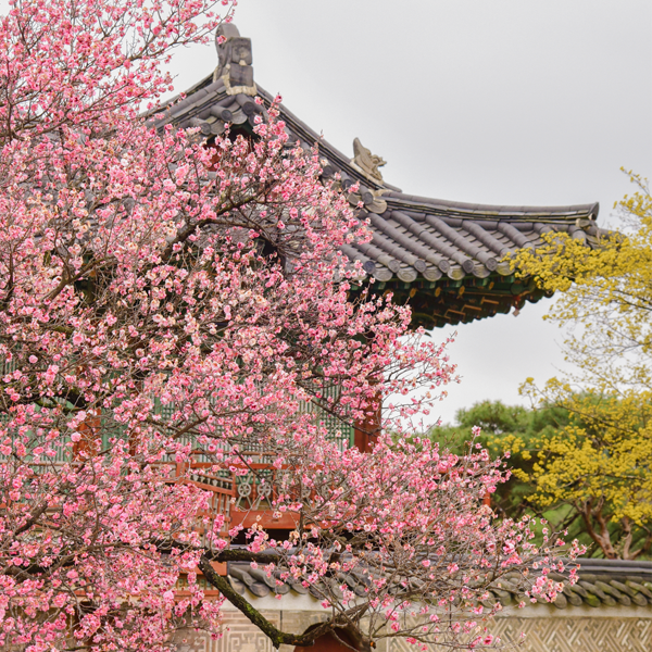 에서는 전통 건축물 배경에 홍매화가 피어있는 모습을 감상할 수 있어요. 이처럼 아름다운 풍경 속에서 소중한 순간을 기록해보세요.