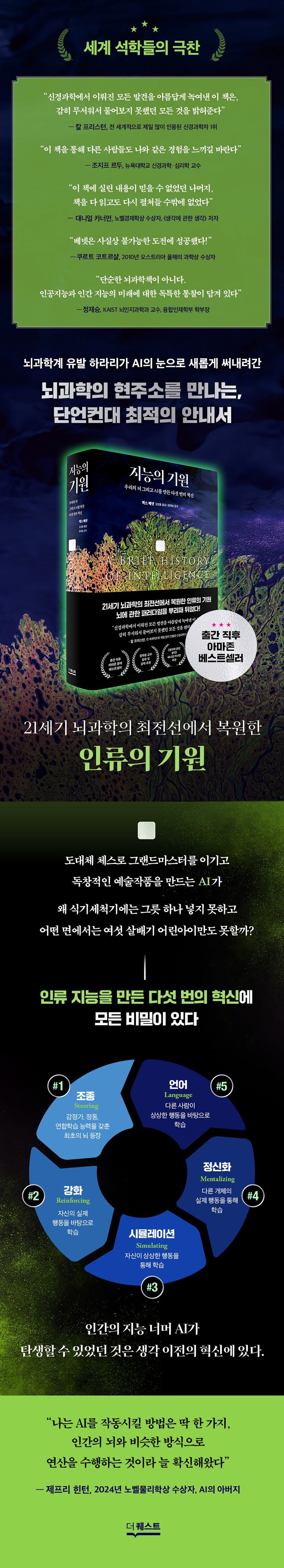 "지능의 기원"은 인간의 지능이 어떻게 발전해왔는지를 탐구하는 책이에요. 이 책은 단순히 과거의 지능을 설명하는 데 그치지 않고, 미래의 인공지능이 어떻게 발전할지를 예측하는 내용도 담고 있어요. 특히, 인간의 뇌와 AI의 관계를 깊이 있게 다루고 있어서 많은 독자들에게 큰 인기를 끌고 있답니다.