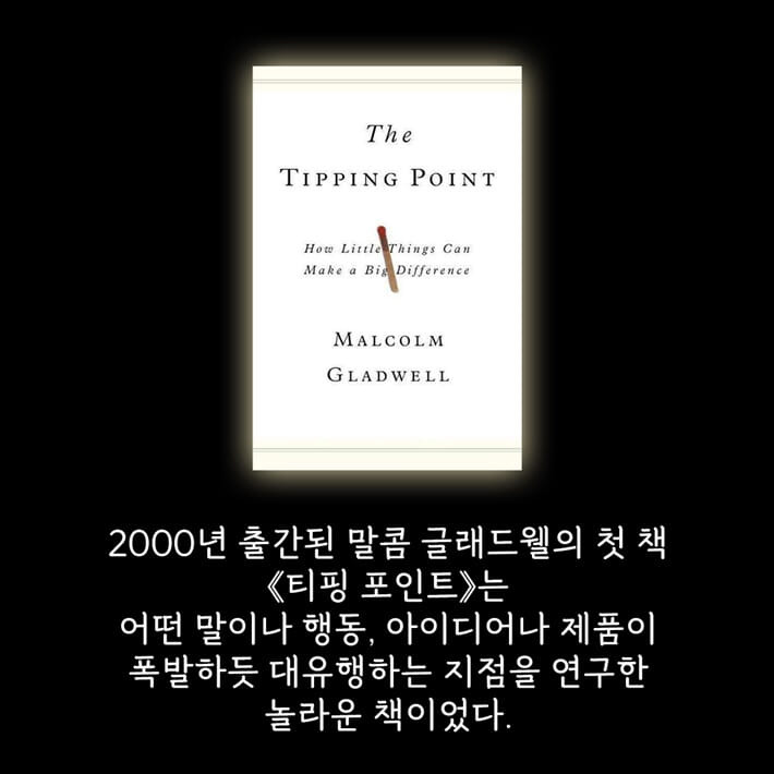 2000년 출간된 말콤 글래드웰의 ‘티핑 포인트’는 특정 현상이 순식간에 폭발하는 지점이 어떻게 형성되는지를 비롯해 고착성의 법칙과 소수의 법칙, 상황의 힘 같은 행동경제학적 요소들이 어