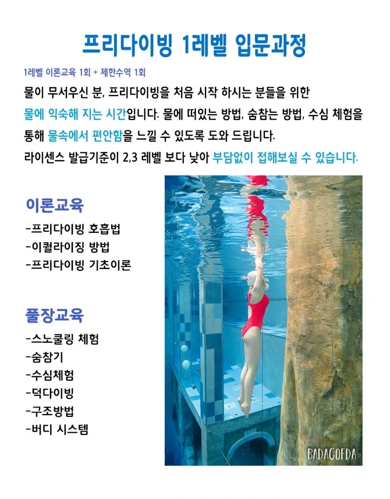 프리다이빙을 통해 새로운 세계를 경험하고, 자신을 한 단계 더 발전시킬 수 있는 기회를 가져보시기 바랍니다.