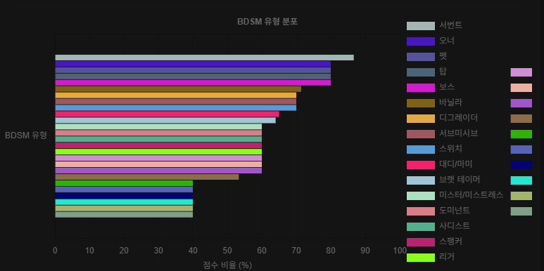 - 결과는 지배적(Dominant), 복종적(Submissive), 스위치(Switch) 등으로 분류됩니다.